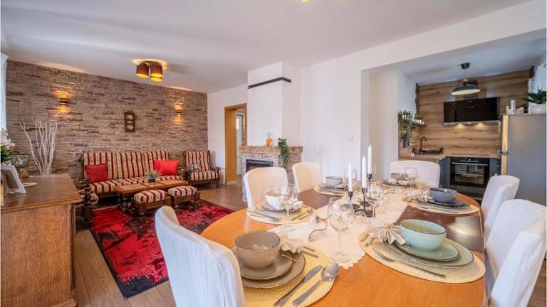 Das Ferienhaus bietet eine voll ausgestattete Küche, so dass Sie Ihre Mahlzeiten bequem selbst zubereiten können. Alternativ können Sie auch die nahegelegenen Restaurants erkunden und lokale Köstlichkeiten genießen.