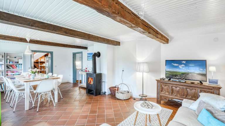 Das Ferienhaus bietet insgesamt vier Schlafzimmer und ein Wohnzimmer. Die Unterkunft ist komplett ausgestattet, inklusive einer voll ausgestatteten Küche mit Kühlschrank und Kabel-TV im Wohnzimmer.