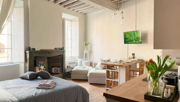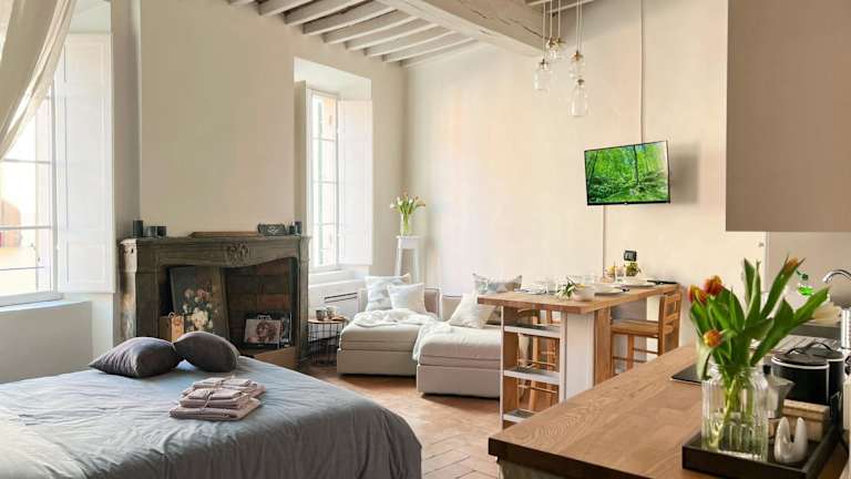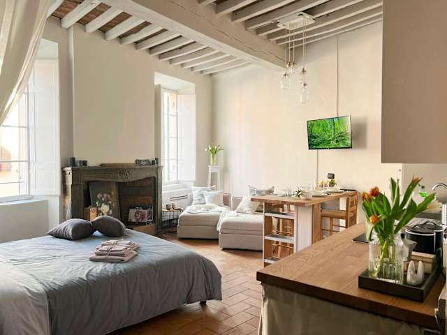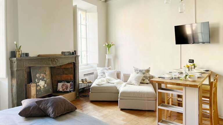 Die Ferienwohnung besteht aus einem Schlafzimmer, einem Wohnzimmer und einer voll ausgestatteten Küche mit Kühlschrank und Kaffeemaschine. Die Unterkunft verfügt über ein Badezimmer mit Bidet und Dusche. Handtücher und Bettwäsche werden zur Verfügung gestellt.