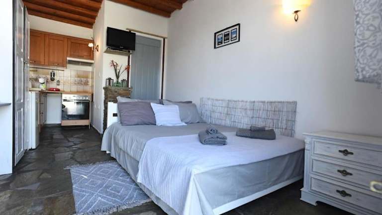 Das Studio-Apartment befindet sich im Erdgeschoss und verfügt über ein gemütliches Schlafzimmer, in dem Sie sich nach einem erlebnisreichen Tag entspannen können. Das Apartment ist klimatisiert und verfügt über einen Flachbild-TV sowie eine voll ausgestattete Küche mit einem Kühlschrank, einem Kochfeld und einer Waschmaschine. Handtücher und Bettwäsche werden gestellt, so dass Sie sich um nichts kümmern müssen.