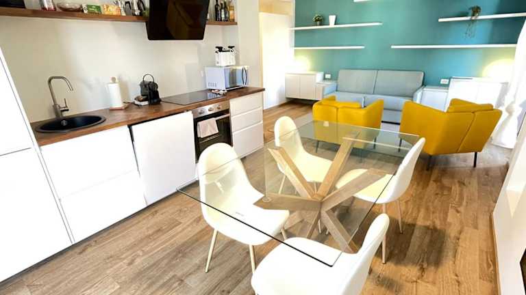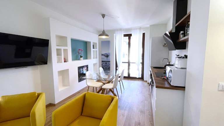 Die Wohnung besteht aus 2 Schlafzimmern, einem Wohnzimmer sowie einer voll ausgestatteten Küche mit Kühlschrank und Kaffeemaschine. Es sind zudem 2 Badezimmer mit Bidet und Dusche vorhanden. Handtücher und Bettwäsche werden bereitgestellt.