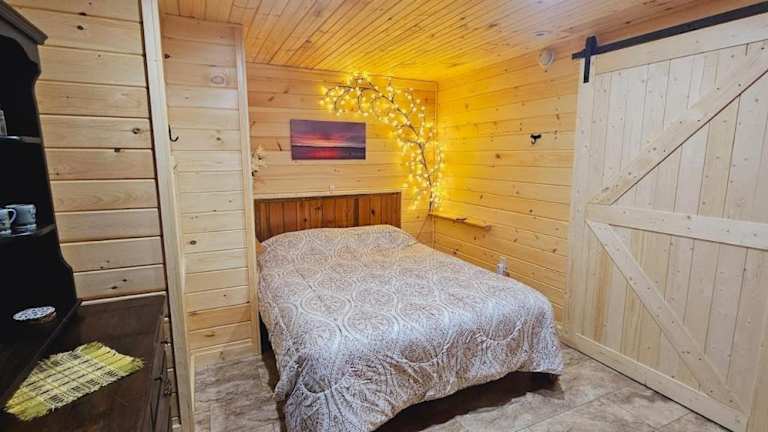 Die Unterkunft im Loza House Adirondack Screened-in Porch Unit Lake Front ist klimatisiert und bietet Ihnen einen komfortablen Aufenthalt. Die Zimmer sind mit einem Flachbild-TV ausgestattet und Handtücher sowie Bettwäsche werden gestellt. Für zusätzlichen Komfort steht Ihnen ein Whirlpool zur Verfügung, in dem Sie sich entspannen können. Die abgeschirmte Veranda am See und der Grill bieten Ihnen die Möglichkeit, die Natur zu genießen und gemütliche Abende im Freien zu verbringen.