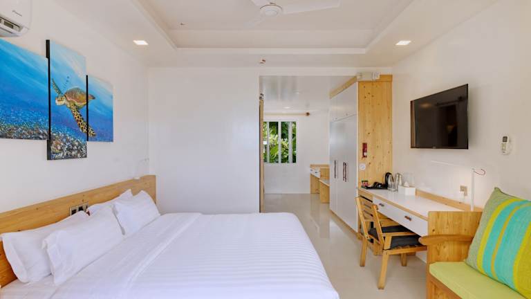 Das Luau Beach Inn befindet sich auf der Insel Fulidhoo und bietet eine atemberaubende Umgebung. Die Insel ist von weißen Sandstränden und kristallklarem Wasser umgeben, was sie zu einem perfekten Ort für Erholung und Entspannung macht. Sie können auch die Schönheit der Unterwasserwelt erkunden und Schnorcheln oder Tauchen gehen. Die Insel bietet auch die Möglichkeit, traditionelle maledivische Dörfer zu erkunden und die lokale Kultur kennenzulernen.