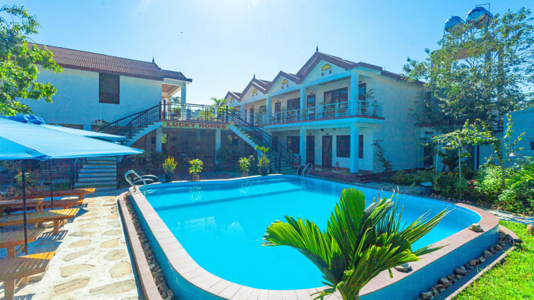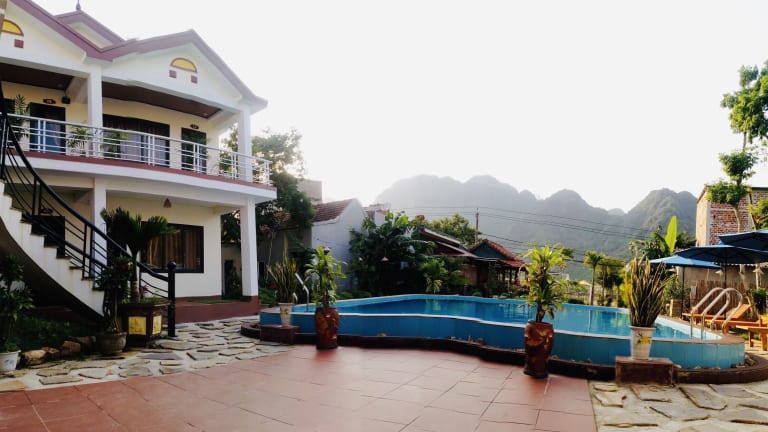 Das Hotel Lucky Homes in Phong Nha bietet seinen Gästen eine Vielzahl von Annehmlichkeiten und Serviceleistungen für einen angenehmen Aufenthalt. Mit einem Außenpool, einem schönen Garten und einer Terrasse können Sie die Natur genießen und sich entspannen. Das hoteleigene Restaurant serviert köstliche vietnamesische Küche, während die Snackbar eine praktische Option für Snacks und Erfrischungen ist. Die freundlichen Mitarbeiter sind rund um die Uhr für Sie da und helfen Ihnen gerne bei allen Anliegen. Das kostenfreie WLAN ermöglicht es Ihnen, in Verbindung zu bleiben. Starten Sie jeden Morgen mit einem leckeren kontinentalen Frühstück in den Tag. Die Umgebung bietet Ihnen viele Möglichkeiten zum Radfahren und das Hotel stellt Ihnen gerne Fahrräder zur Verfügung. Mit dem Autoverleih vor Ort können Sie die Umgebung erkunden und den nahegelegenen Flughafen Dong Hoi erreichen Sie nach nur 39 km.