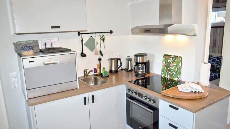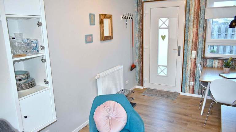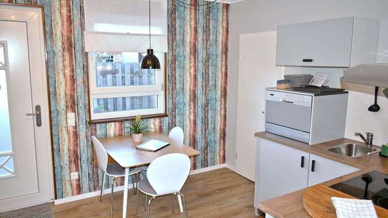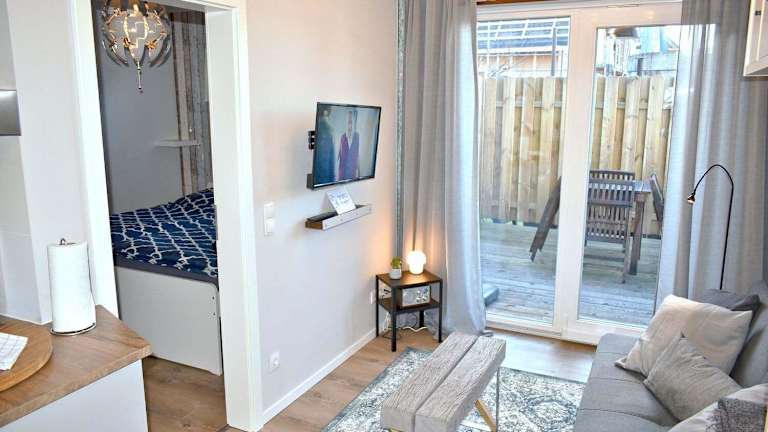 Lütt Hus an de See Ferienwohnung bietet eine Unterkunft mit einem Schlafzimmer, die mit einem Wohnzimmer, einem Flachbild-TV mit Satellitenprogrammen und einer voll ausgestatteten Küchenzeile ausgestattet ist. Zu den Annehmlichkeiten gehören ein Kühlschrank, ein Ofen sowie ein Badezimmer mit Dusche. Ein Garten steht den Gästen zur Verfügung.