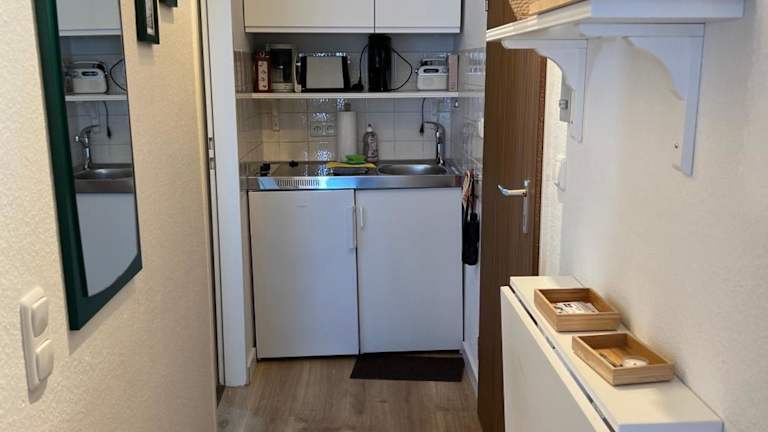 Die Ferienwohnung verfügt über ein Schlafzimmer, kostenloses WLAN, einen Fernseher, eine Waschmaschine sowie eine Küche, die mit einem Kühlschrank und einer Herdplatte ausgestattet ist.