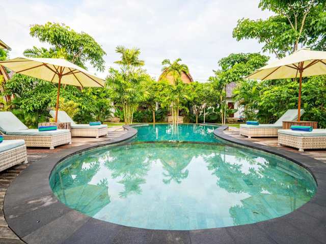Das Lumbung bukit Resort ist eine attraktive Unterkunft im Uluwatu-Viertel Pecatu. Die Lage des Resorts ermöglicht es den Gästen, die umliegenden Sehenswürdigkeiten und Strände bequem zu erreichen. Mit einem schönen Außenpool und einer Terrasse bietet das Resort eine entspannte Umgebung, um den Pool- und Gartenblick zu genießen. Die klimatisierten Zimmer sind gut ausgestattet und verfügen über Annehmlichkeiten wie Kühlschrank, Minibar und Wasserkocher. Das hilfsbereite Personal steht Ihnen rund um die Uhr zur Verfügung und der Flughafentransfer kann gegen Gebühr arrangiert werden.