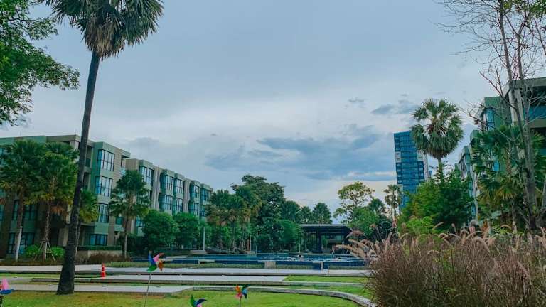 Lumpini Park Beach ist eine Ferienwohnung mit einem Außenpool, einem Garten und einer Terrasse. Die Unterkunft bietet kostenfreies WLAN und einen Balkon mit Poolblick.