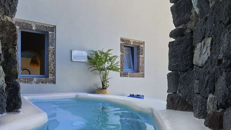 Das Hotel Luna Santorini Suites in Pyrgos bietet ein einzigartiges Erlebnis in einem ehemaligen Weingut. Mit atemberaubendem Blick auf die Ägäis und die Insel Santorin können die Gäste in den traditionell eingerichteten Suiten einen erholsamen Aufenthalt genießen. Die private Terrasse mit Tauchbecken im Freien lädt zum Entspannen ein. Das Hotel bietet auch kostenfreies WLAN und eine möblierte Terrasse. In der Nähe finden Sie eine Auswahl an Cafés, Restaurants und einem Bankautomaten. Der Flughafen Santorin und der Hafen Athinios sind jeweils nur 5 km entfernt.