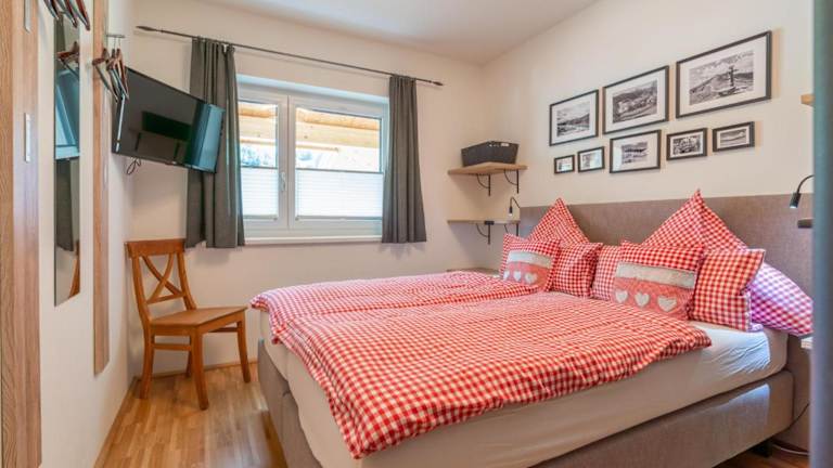 Die Ferienwohnung umfasst zwei Schlafzimmer, eine voll ausgestattete Küche mit Kühlschrank und Geschirrspüler, einen Flachbild-TV, einen Sitzbereich sowie ein Badezimmer mit Dusche. Handtücher und Bettwäsche sind in der Unterkunft verfügbar, ebenso ein Abstellraum für Skier.