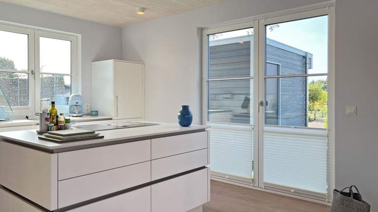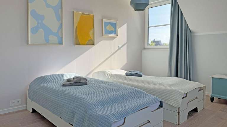 Das Ferienhaus umfasst zwei Schlafzimmer und ist ausgestattet mit einer Küchenzeile, die einen Kühlschrank und einen Geschirrspüler beinhaltet. Zudem stehen zwei Badezimmer mit Dusche, Haartrockner und Waschmaschine zur Verfügung. Ein Flachbild-TV ist ebenfalls vorhanden.