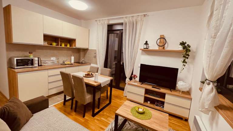 Das Lux Apartmani Vojinović verfügt über einen schönen Garten mit einem Kinderspielplatz, wo sich die kleinen Gäste austoben können. In der Umgebung gibt es auch zahlreiche Möglichkeiten für Outdoor-Aktivitäten wie Wandern, Radfahren und Skifahren.