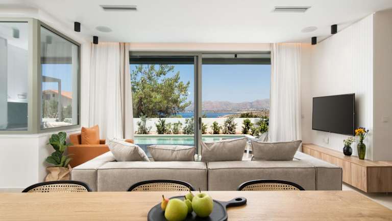 Die Villa verfügt über 3 geräumige Schlafzimmer und 3 Badezimmer, die allen Komfort bieten. Die Zimmer sind mit hochwertiger Bettwäsche und Handtüchern ausgestattet und verfügen über einen Flachbild-TV. Die voll ausgestattete Küche ermöglicht es Ihnen, Ihre eigenen Mahlzeiten zuzubereiten, und die Terrasse bietet einen herrlichen Meerblick, den Sie bei einem Glas Wein genießen können.