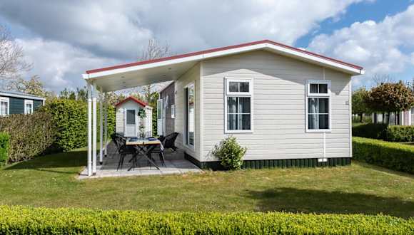 Das Luxe 5-persoons Chalet verfügt über 2 Schlafzimmer, ein geräumiges Wohnzimmer und eine voll ausgestattete Küche mit Kühlschrank und Backofen. Das Chalet bietet zudem eine Terrasse mit Blick auf den Garten, auf der Sie die frische Luft und die schöne Umgebung genießen können. Ein Flachbild-TV und kostenfreies WLAN sind ebenfalls vorhanden, um Ihnen einen angenehmen Aufenthalt zu ermöglichen.