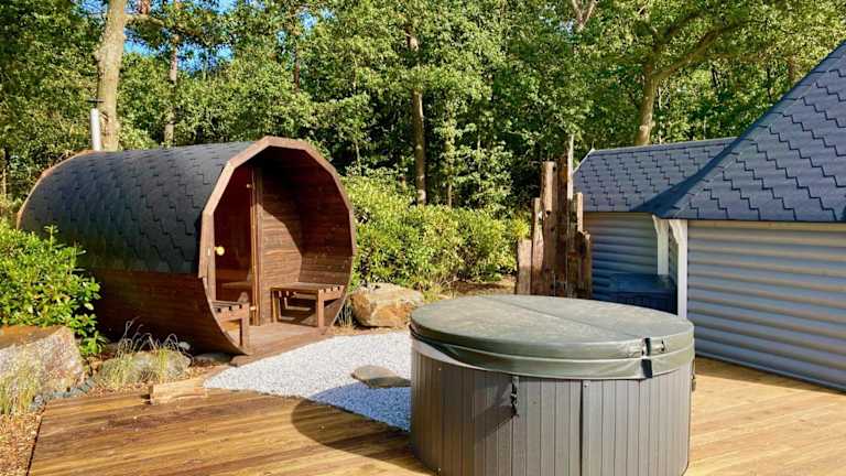 Luxe Finse Kota met Jacuzzi en SaunaBarrel de Zandhoef bietet kostenloses WLAN und einen Garten mit Terrasse und Gartenblick. Die Unterkunft ist mit einer Sauna und einem Whirlpool ausgestattet und ermöglicht den Gästen erholsame Momente.
