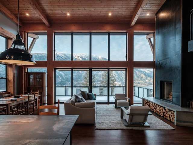 Die Villa Luxe Modern Timberframe - Iconic Panorama Views with AC bietet eine moderne Architektur und einen Garten sowie eine Terrasse. Sie sorgt für einen angenehmen Aufenthalt mit kostenlosem WLAN und Flussblick.