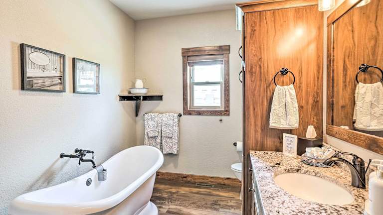 Das Luxe Spearfish Hideaway Golf, Hike, Explore! bietet Ihnen eine komfortable Unterkunft in Spearfish. Genießen Sie die ruhige Lage und die Nähe zu Sehenswürdigkeiten wie dem Adams Museum. Das Ferienhaus verfügt über alle Annehmlichkeiten, die Sie für einen angenehmen Aufenthalt benötigen, darunter eine voll ausgestattete Küche und kostenfreies WLAN. Der nahegelegene Regionalflughafen Rapid City ermöglicht Ihnen eine bequeme Anreise.