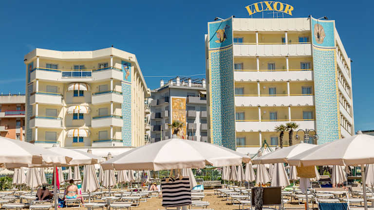 Das Luxor e Cairo Wellness Hotel in Lido di Jesolo bietet Ihnen einen erholsamen Aufenthalt mit Blick auf die Adria. Genießen Sie die großzügige Sonnenterrasse mit Pool und entspannen Sie auf Ihrem eigenen Balkon. Die Zimmer sind klassisch eingerichtet und bieten viel Tageslicht. Freuen Sie sich auf ein Frühstücksbuffet mit Meerblick und internationale Gerichte im Restaurant. Der moderne Wellnessbereich mit Fitnessraum, Sauna und Whirlpool lädt zum Entspannen ein. Das Hotel befindet sich in einer großartigen Strandlage und bietet zudem eine gute Anbindung an Geschäfte und Restaurants in der Umgebung.