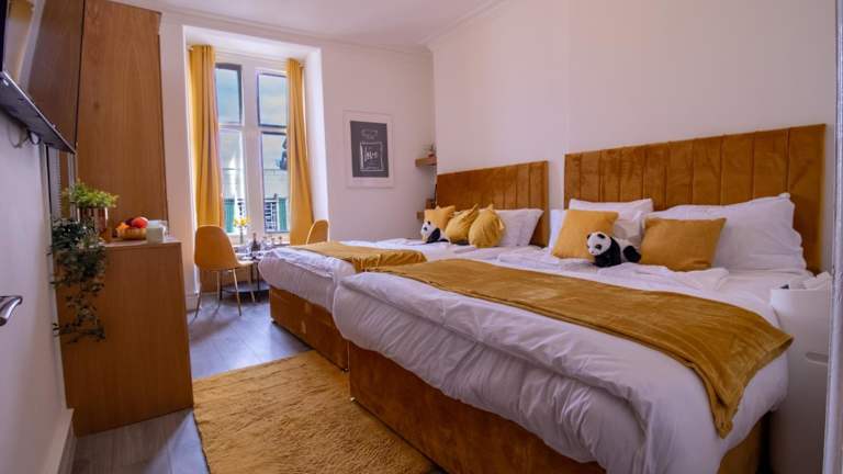 Die Zimmer sind mit einer voll ausgestatteten Küche, Kühlschrank, Ofen, Mikrowelle, Kaffeemaschine und Wasserkocher ausgestattet. Jeder Raum verfügt über einen Essbereich, einen Flachbild-TV und ein eigenes Badezimmer mit Dusche.
