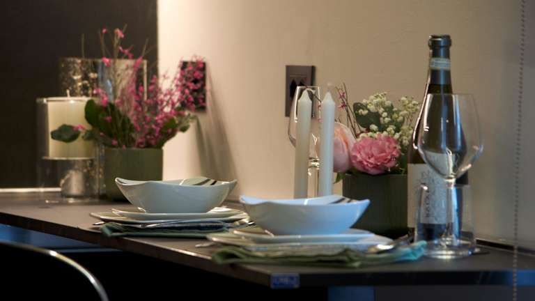 Das Penthouse verfügt über ein Schlafzimmer, ein Wohnzimmer, eine voll ausgestattete Küche mit Kühlschrank und Kaffeemaschine sowie ein Badezimmer mit Bidet und Dusche. Handtücher und Bettwäsche werden bereitgestellt. Die Ferienwohnung ist klimatisiert und bietet schallisolierte Zimmer. Allergikerfreundliche Zimmer sind ebenfalls verfügbar.