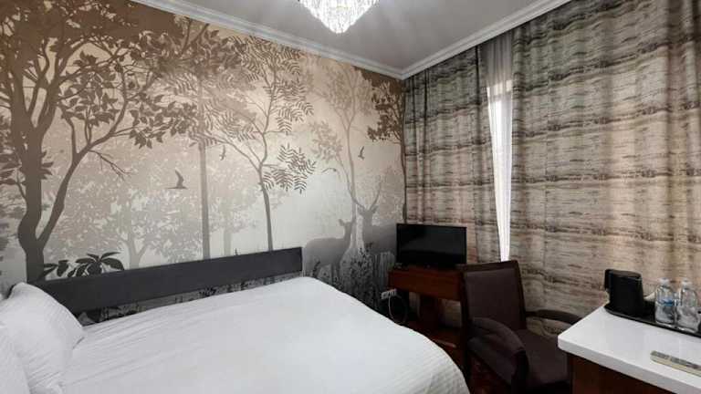 Das ABAI INN - Nursaya in Taraz ist eine komfortable 3-Sterne-Unterkunft, die Ihnen einen angenehmen Aufenthalt bietet. Das Hotel verfügt über ein Restaurant und klimatisierte Zimmer mit kostenfreiem WLAN. Kostenlose Privatparkplätze stehen zur Verfügung und ein Flughafentransfer kann gegen Gebühr arrangiert werden. Das freundliche Personal spricht mehrere Sprachen und ist rund um die Uhr für Sie da.
