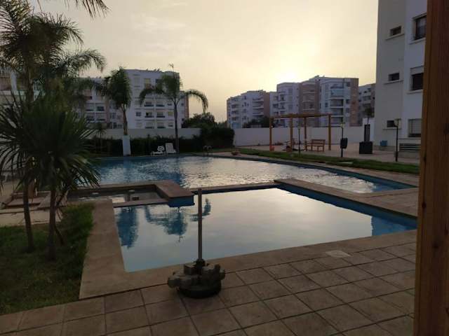 Genießen Sie einen luxuriösen Aufenthalt im LUXURY 3 bedroom apartment with pool in Derroua, Marokko. Dieses Apartment bietet Ihnen eine private Terrasse, einen eigenen Pool und kostenfreie Parkplätze. Entspannen Sie inmitten eines schönen Gartens und profitieren Sie von der Nähe zu verschiedenen Sehenswürdigkeiten wie dem Anfa Place Living Resort, dem Morocco Mall und der Hassan-II.-Moschee. Das Apartment ist klimatisiert und verfügt über 3 separate Schlafzimmer, eine voll ausgestattete Küche und 2 Bäder. Ein Flachbild-TV sorgt für Unterhaltung. Der Golfclub Casa Green und der Bahnhof Casa Voyageurs sind ebenfalls gut erreichbar.