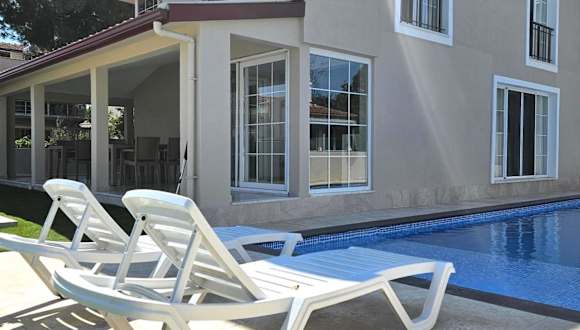 Die Luxury 5BR Villa w Pool & Beach Access Ayvalık ist eine Unterkunft direkt am Strand und bietet Übernachtungsmöglichkeiten mit einem saisonalen Außenpool, einem Garten, einem eigenen Strandbereich sowie kostenlosem WLAN. Die Villa ist privat geführt und weist eine Nichtraucherpolitik auf sowie eine Altersgrenze für den Check-in von 18 Jahren.