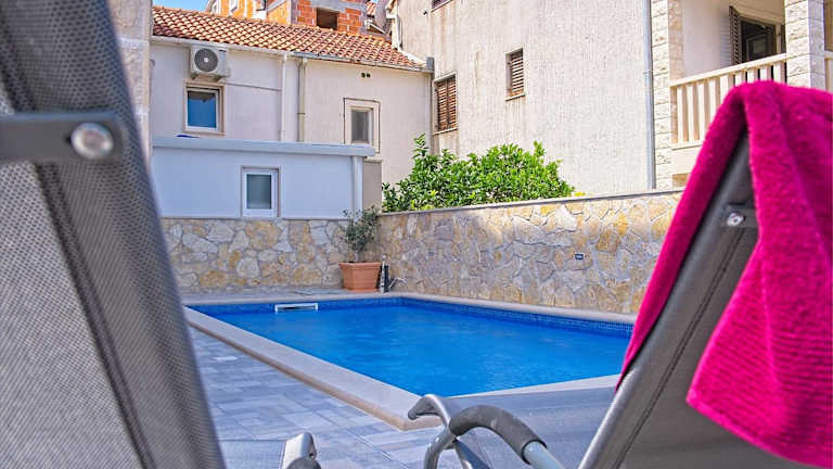 Luxury apartment "Blue Diamond" bietet Übernachtungsmöglichkeiten mit eigenem Pool, Garten und kostenlosem Privatparkplatz. Die Unterkunft ist klimatisiert und vereint 3 Schlafzimmer, ein Wohnzimmer sowie eine voll ausgestattete Küche. Ein Whirlpool und Duschen sind in den 2 Badezimmern vorhanden. Handtücher und Bettwäsche werden zur Verfügung gestellt. Zudem ist die Unterkunft mit einer rund um die Uhr besetzten Rezeption ausgestattet.