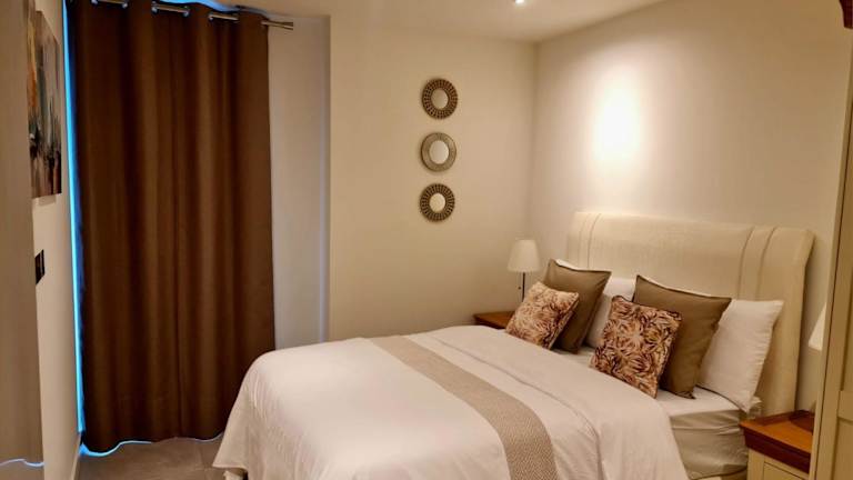 Die Ferienwohnung umfasst eine Terrasse mit Stadtblick, 2 Schlafzimmer, ein Wohnzimmer mit einem Satelliten Flachbild-TV sowie eine gut ausgestattete Küche. Es stehen 2 Badezimmer mit Dusche und Badewanne zur Verfügung. Handtücher und Bettwäsche sind ebenfalls vorhanden.