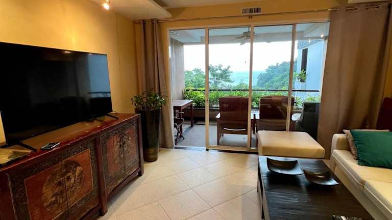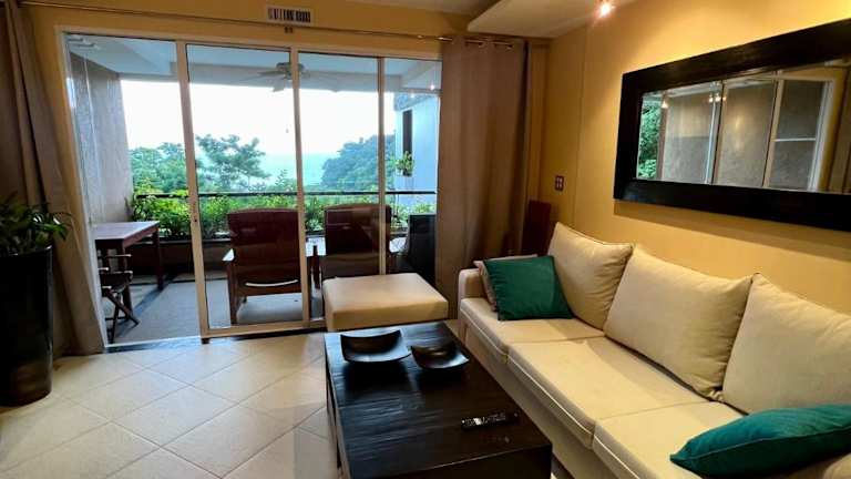 Die Ferienwohnung verfügt über zwei Schlafzimmer und ein Wohnzimmer sowie einen Flachbild-TV. Eine gut ausgestattete Küchenzeile mit Herdplatte ist ebenfalls vorhanden. Die Unterkunft umfasst zwei Badezimmer, die mit einer Dusche ausgestattet sind. Zudem gibt es einen Balkon mit Meerblick.
