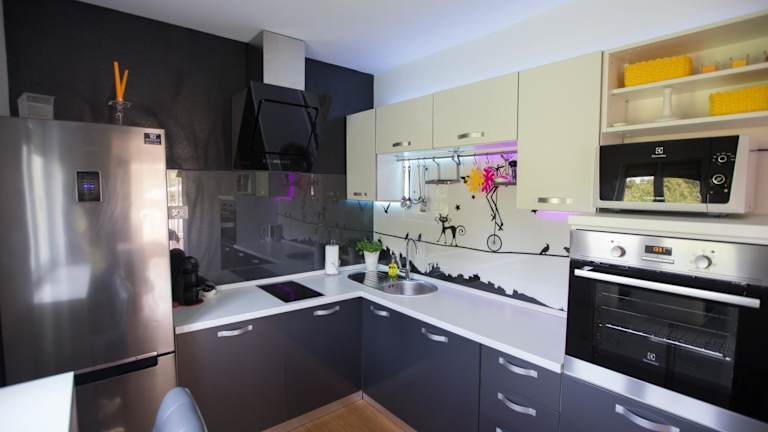 Die Ferienwohnung ist klimatisiert und umfasst zwei Schlafzimmer, ein Wohnzimmer sowie eine voll ausgestattete Küche mit Kühlschrank und Kaffeemaschine. Es stehen zwei Badezimmer mit Dusche und Whirlpool zur Verfügung. Zur Ausstattung gehören ein Flachbild-TV, ein Blu-ray-Player, eine Spielekonsole und ein CD-Player.