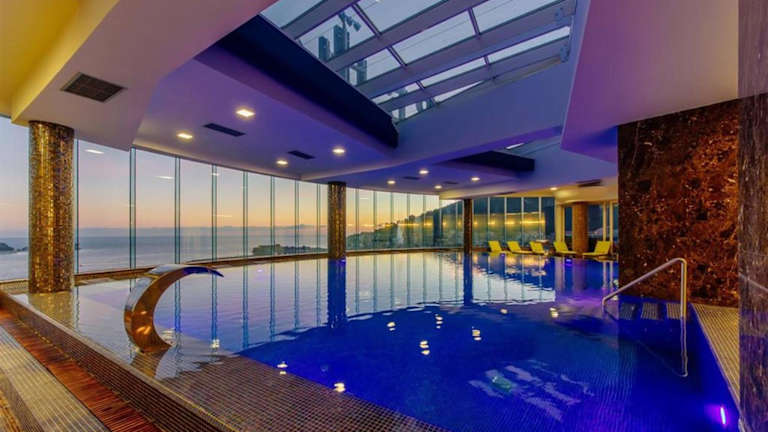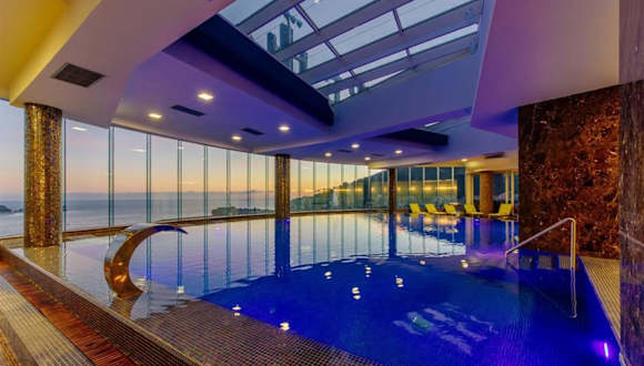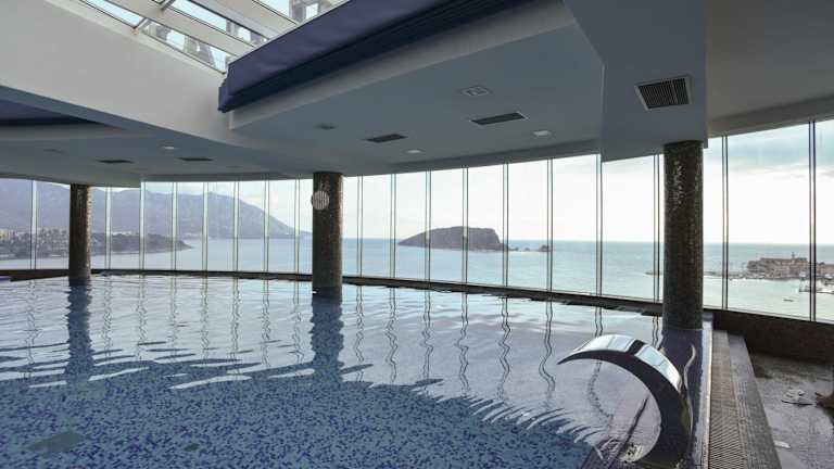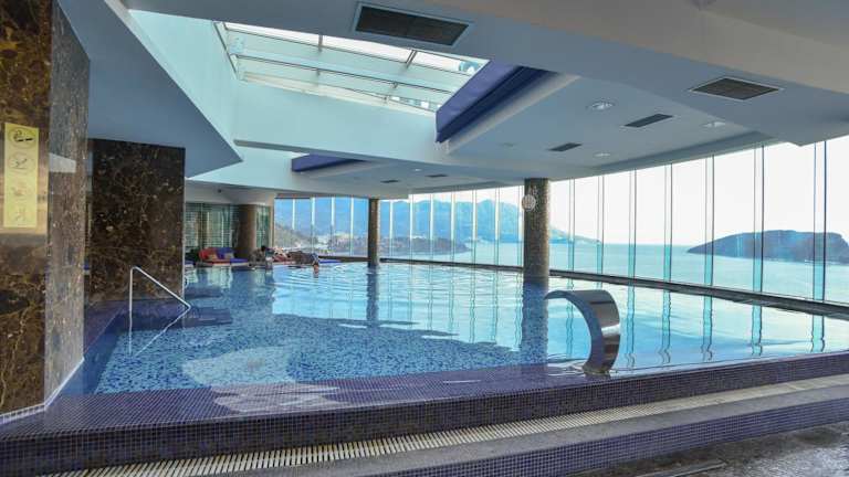 Das Hotel bietet ein umfangreiches Wellnesscenter mit verschiedenen Behandlungs- und Massageangeboten. Zudem stehen Innen- und Außenpools sowie ein Pool auf dem Dach zur Verfügung. Der Außenpool ist saisonal nutzbar, während der Innenpool ganzjährig geöffnet ist. Fitnessmöglichkeiten sind nicht spezifisch aufgeführt.