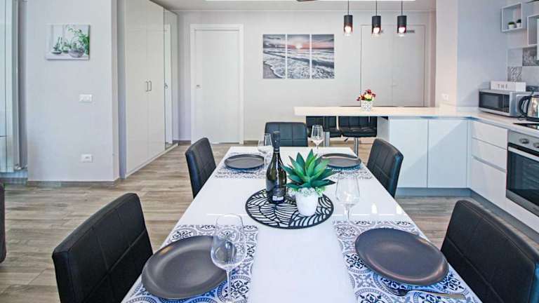 Die Ferienwohnung umfasst 2 Schlafzimmer, ein Wohnzimmer und eine voll ausgestattete Küche mit Kühlschrank und Kaffeemaschine. Zudem sind 2 Badezimmer mit Bidet und Dusche vorhanden. Handtücher und Bettwäsche werden gestellt.