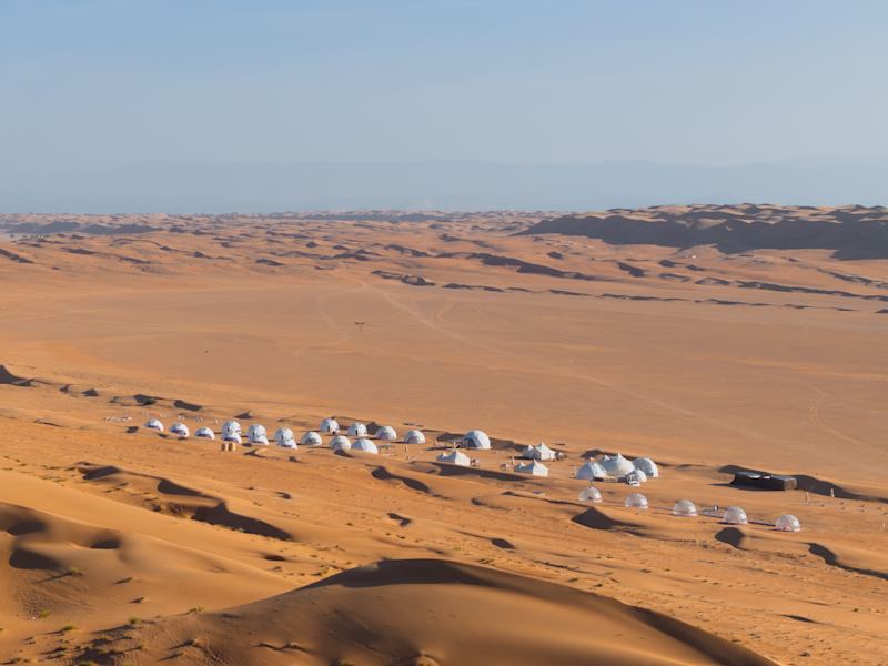 **Luxury Desert Camp** ist das ideale Ziel für Reisende, die das Wüstenleben in komfortablem und luxuriösem Stil erleben möchten. Eingebettet im Herzen der omanischen Wüste, verspricht es ein immersives Erlebnis inmitten ruhiger Landschaften. Die Unterkünfte reichen von Dome-Zelten bis hin zu Royal-Zelten, jedes mit eleganten Innenräumen und modernem Komfort. Besucher können ein Wüstendining-Erlebnis mit köstlichen Mahlzeiten genießen, einschließlich omanischer und traditioneller arabischer Küche. Spannende Aktivitäten wie Kamelreiten und Sandbiken sorgen für Abwechslung und Abenteuer. Tauchen Sie ein in die traditionelle omanische Kultur mit Volksdänzen und Teezeremonien und erleben Sie ein unvergessliches Wüstenabenteuer.