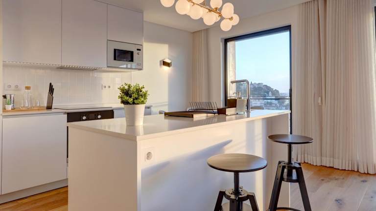Die Ferienwohnung verfügt über zwei Schlafzimmer, ein Wohnzimmer und ist mit einer voll ausgestatteten Küche ausgestattet, die einen Kühlschrank und eine Kaffeemaschine beinhaltet. Insgesamt stehen den Gästen drei Badezimmer mit Dusche und kostenlosen Pflegeprodukten zur Verfügung. Handtücher und Bettwäsche werden bereitgestellt.