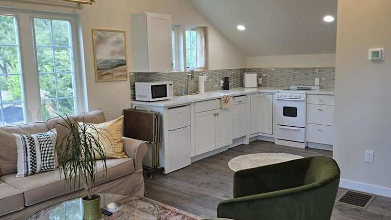 Die Ferienwohnung umfasst ein Schlafzimmer und eine voll ausgestattete Küche. Zur Ausstattung gehören kostenloses WLAN, ein Flachbild-TV, Klimaanlage, eine Terrasse mit Gartenblick sowie Heizung. In allen Bereichen der Unterkunft steht WLAN zur Verfügung.
