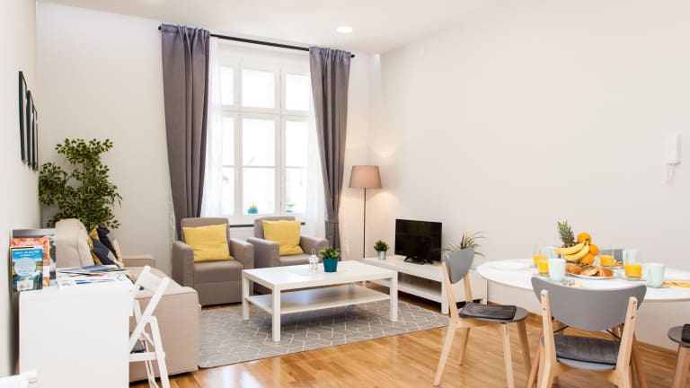 Die Luxury Main Square Apartments bieten komfortable und stilvolle Unterkünfte. Die klimatisierten Apartments verfügen über Parkettböden und eine moderne Einrichtung. Jedes Apartment verfügt über eine voll ausgestattete Küche mit einem Kühlschrank, einem Backofen, einem Kochfeld und einem Wasserkocher. Ein Essbereich und ein Flachbild-Sat-TV sorgen für zusätzlichen Komfort. Das private Badezimmer ist mit einer Dusche und einem Haartrockner ausgestattet. Kostenloses WLAN ist in allen Bereichen verfügbar.