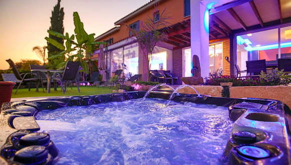 Das Ferienhaus bietet Platz in 3 Schlafzimmern und umfasst ein Wohnzimmer sowie eine voll ausgestattete Küche mit Kühlschrank und Kaffeemaschine. Es verfügt über 2 Badezimmer, die mit einer Dusche und einem Whirlpool ausgestattet sind. Die Unterkunft bietet außerdem einen Balkon sowie Handtücher und Bettwäsche.