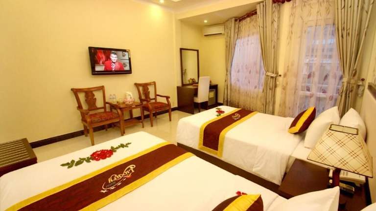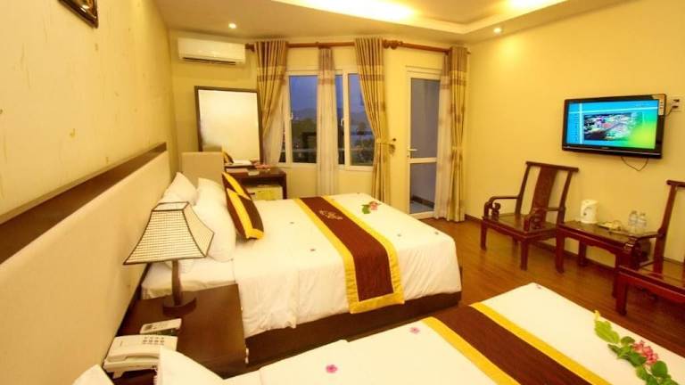 Das Luxury Nha Trang Hotel ist eine zentral gelegene Unterkunft an der Tran Phu Straße, die mit ihrem Außenpool und kostenlosen WLAN einen angenehmen Aufenthalt bietet. Genießen Sie die entspannende Atmosphäre und die Annehmlichkeiten wie Massagen und Sauna. Das hoteleigene Restaurant verwöhnt Sie mit einem reichhaltigen Frühstücksbuffet und einer vielfältigen Auswahl an westlich-asiatischer Küche. Die Zimmer sind komfortabel eingerichtet und einige bieten einen atemberaubenden Blick auf die Nha Trang Bucht. Das freundliche Personal steht Ihnen zur Seite und organisiert gerne Mietwagen, Mietmotorräder und Tagesausflüge für Sie.