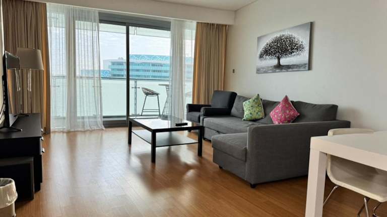 Die Ferienwohnung umfasst ein Schlafzimmer, ein Wohnzimmer und eine voll ausgestattete Küche mit Kühlschrank und Kaffeemaschine. Zudem stehen zwei Badezimmer mit Bidet und Dusche zur Verfügung. Zur Unterhaltung gibt es einen Flachbild-TV mit Satellitenkanälen, einen Blu-ray-Player und einen CD-Player.