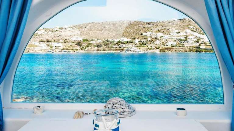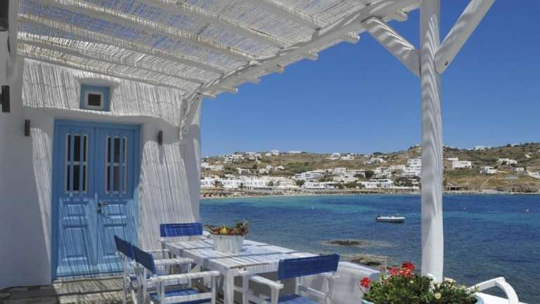 Das Luxury Sea House By Blue Waters Mykonos befindet sich direkt am Strand von Ornos, einem beliebten Badeort auf der Insel Mykonos. Von der Terrasse aus haben Sie einen spektakulären Blick auf das türkisblaue Wasser der Ägäis. Restaurants und Geschäfte sind bequem zu Fuß erreichbar und bieten eine Vielzahl von kulinarischen und Einkaufsmöglichkeiten. Die Bushaltestelle ist nur 50 m entfernt und der Flughafen Mykonos ist 3 km entfernt. Mykonos-Stadt, mit ihren charmanten Gassen und dem berühmten Nachtleben, erreichen Sie nach nur 1,5 km.