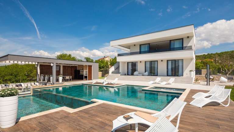 Die Villa verfügt über 6 Schlafzimmer, ein Wohnzimmer, eine voll ausgestattete Küche, die mit einem Kühlschrank und einer Kaffeemaschine ausgestattet ist. Zudem gibt es 8 Badezimmer mit einer Dusche und einem Whirlpool. Die Zimmer sind mit einem TV mit Satellitenkanälen, einer Spielekonsole, einem DVD-Player und einem CD-Player ausgestattet.