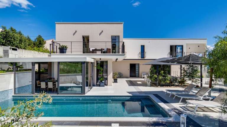 Die Luxury VILLA CECILIA ist eine komfortable Villa mit 4 en-suite Schlafzimmern und bietet Platz für bis zu 8 Personen. Zur Ausstattung der Villa gehören ein Garten, eine Terrasse, ein Außenpool und eine Sauna. Die Unterkunft ist klimatisiert und bietet kostenloses WLAN sowie einen kostenlosen Privatparkplatz. Die Villa ist Nichtraucherunterkunft.