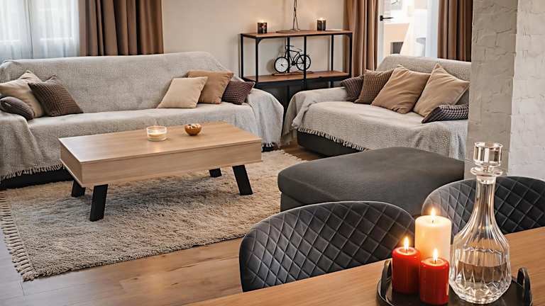 Die Zimmer der Villa bestehen aus 3 Schlafzimmern, einem Wohnzimmer und einer voll ausgestatteten Küche, die mit einem Kühlschrank und einer Kaffeemaschine ausgestattet ist. Des Weiteren stehen in den 3 Badezimmern eine Dusche und ein Haartrockner zur Verfügung.