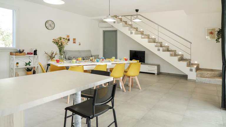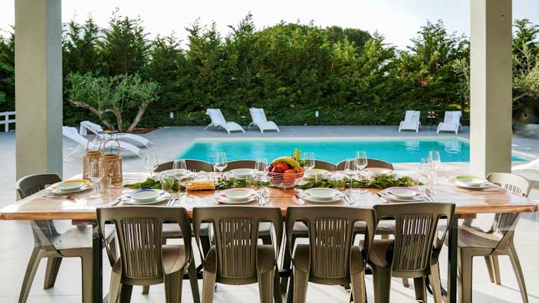 Die Villa ist klimatisiert und umfasst 4 Schlafzimmer, ein Wohnzimmer, eine voll ausgestattete Küche mit Kühlschrank und Kaffeemaschine sowie 3 Badezimmer, die mit Bidet und Dusche ausgestattet sind. Handtücher und Bettwäsche werden zur Verfügung gestellt.