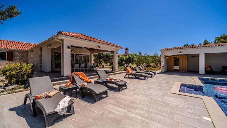 Die Luxury Villa Nature in Milna ist ein wahres Juwel für einen luxuriösen Aufenthalt. Mit einem eigenen beheizten Pool, einer Sauna und einer Feuerstelle bietet diese Villa alles, was man sich für einen unvergesslichen Urlaub wünschen kann. Die Villa verfügt über geräumige Schlafzimmer, eine voll ausgestattete Küche und mehrere Badezimmer. Entspannen Sie im Garten, grillen Sie auf der Terrasse und genießen Sie die Annehmlichkeiten dieser exklusiven Unterkunft.
