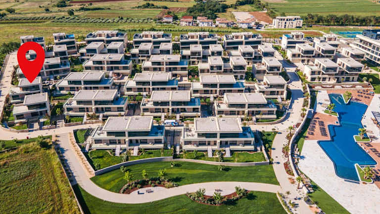 Die Unterkunft befindet sich in Crveni Vrh, nur 2,5 km von Strand Veli Jože entfernt. Die Umgebung ist geprägt von der Nähe zum Strand Crveni Vrh, welcher 2,9 km entfernt liegt. Weitere Sehenswürdigkeiten wie Aquapark Istralandia sind 23 km entfernt, und die Burg Castello di San Giusto ist 48 km entfernt. Der Flughafen Pula liegt 88 km von der Villa entfernt.