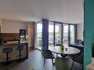 Die Ferienwohnung besteht aus 3 Schlafzimmern und einem Wohnzimmer. Sie ist mit einer voll ausgestatteten Küche ausgestattet, die einen Kühlschrank und eine Kaffeemaschine umfasst. Zudem bietet sie 2 Badezimmer, die jeweils mit einer Dusche und einem Haartrockner ausgestattet sind. Handtücher und Bettwäsche werden bereitgestellt.