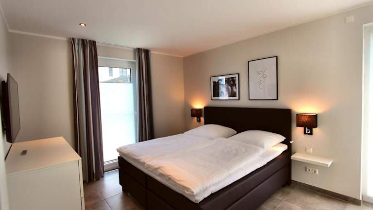 Die Ferienwohnung besteht aus zwei Schlafzimmern und einem Wohnzimmer. Zur Ausstattung gehört eine voll ausgestattete Küchenzeile mit einem Kühlschrank und einer Kaffeemaschine. Des Weiteren gibt es zwei Badezimmer, die jeweils mit einer Dusche und einem Haartrockner ausgestattet sind. Handtücher und Bettwäsche können gegen Aufpreis bereitgestellt werden.