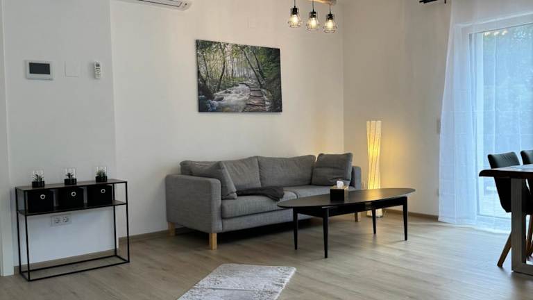 Die Ferienwohnung besteht aus einem Schlafzimmer, einem Wohnzimmer und einer voll ausgestatteten Küche mit Kühlschrank und Kaffeemaschine. Das Badezimmer ist mit einer Dusche und einem Haartrockner ausgestattet. Handtücher und Bettwäsche werden zur Verfügung gestellt. Die Unterkunft ist mit Klimaanlage ausgestattet und bietet Nichtraucherzimmer.